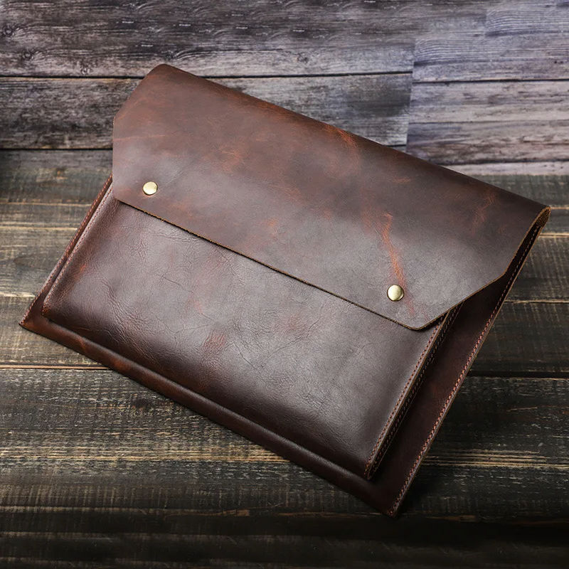 Unisex Business Laptop Sleeve Genuine Leather Waterproof Durable Portable Lightweight Computer Envelope Portfolio Handbag Soft