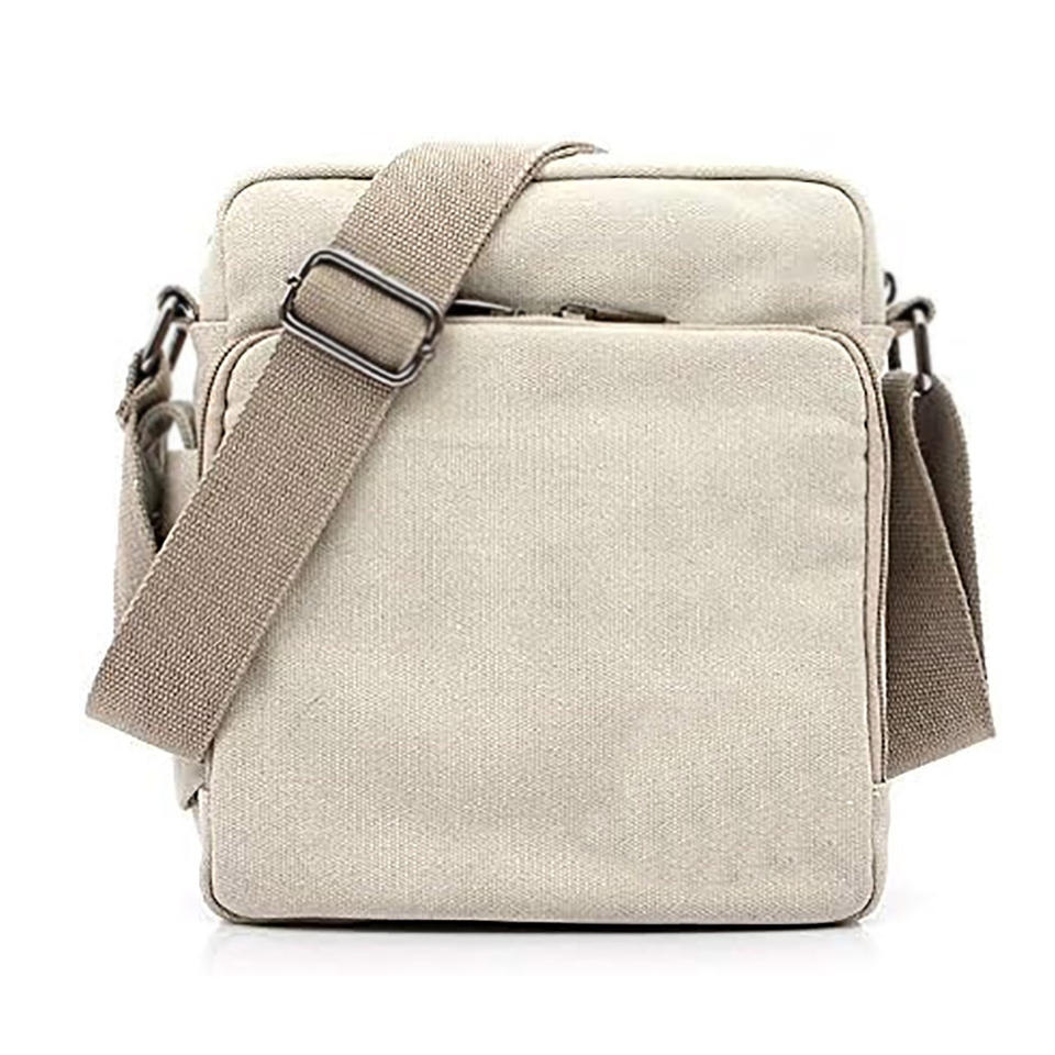 Unisex Canvas Saffiano Thread Pattern Messenger Bag Adjustable Strap Zipper Closure Foldable 1-1.9L Capacity Portable for Travel