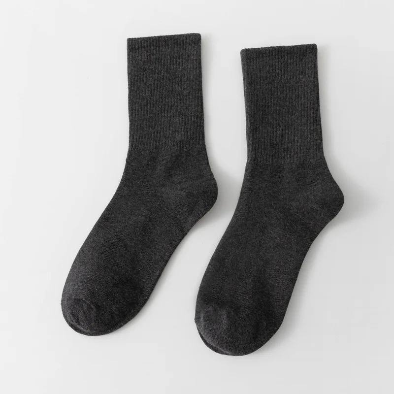 Unisex Casual Cotton Socks Round Neck Mid Tube Fashionable Solid Color Breathable Socks Autumn