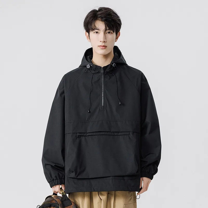 Unisex Casual Windproof Rain Poncho Custom High Quality 100% Polyester Fabric with Zip up Tracksuit Jacket Button Decoration