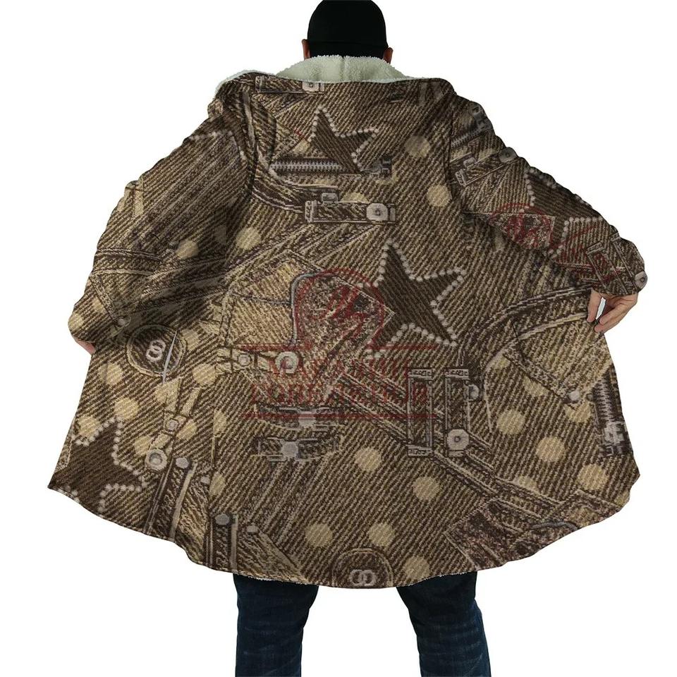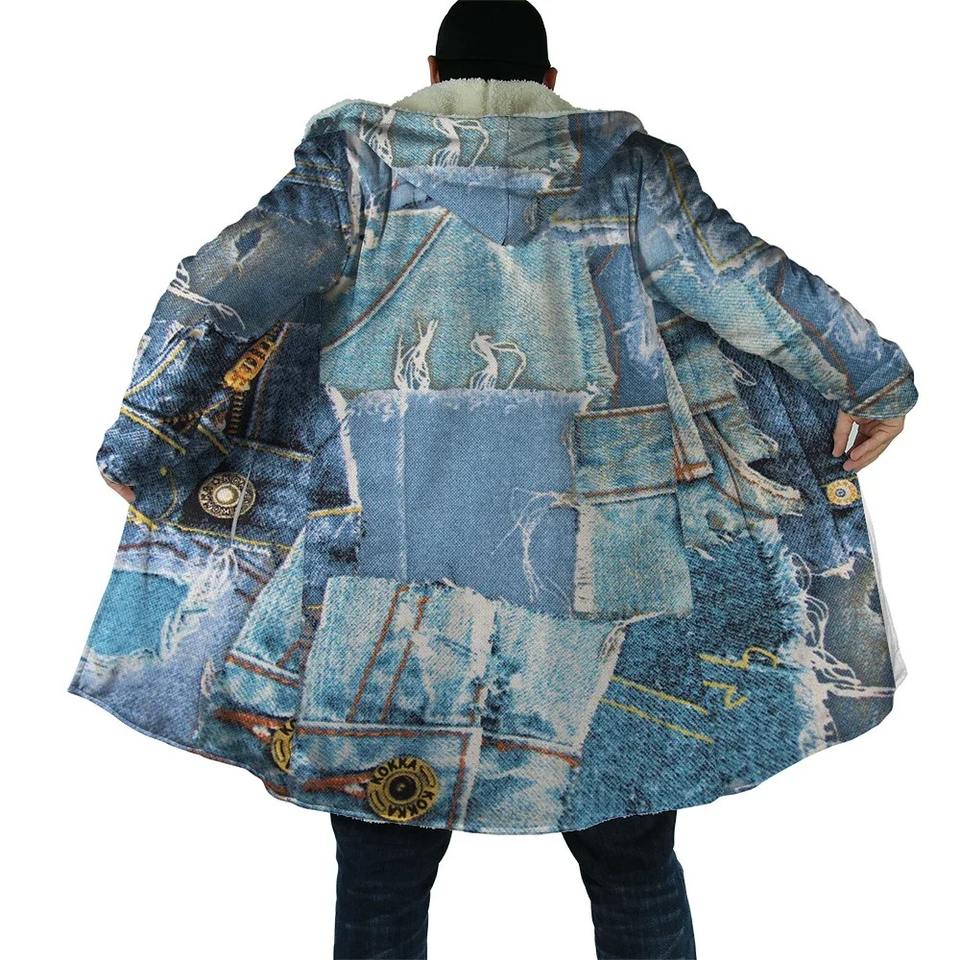 Unisex Casual Winter Coat with Vintage Denim Pocket 3D Printed Wool Warm Cape New Season Crew Neck Design Men's Jackets