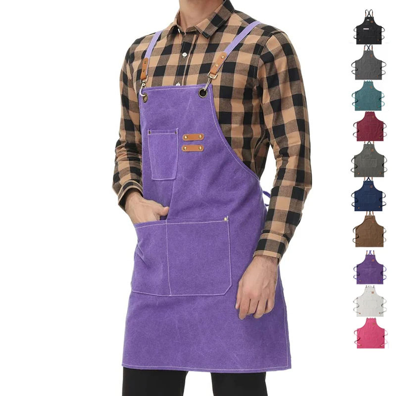 Unisex Comfortable Adjustable Chef Work Aprons with Large Pockets Heavy Duty Cross Back Canvas Apron