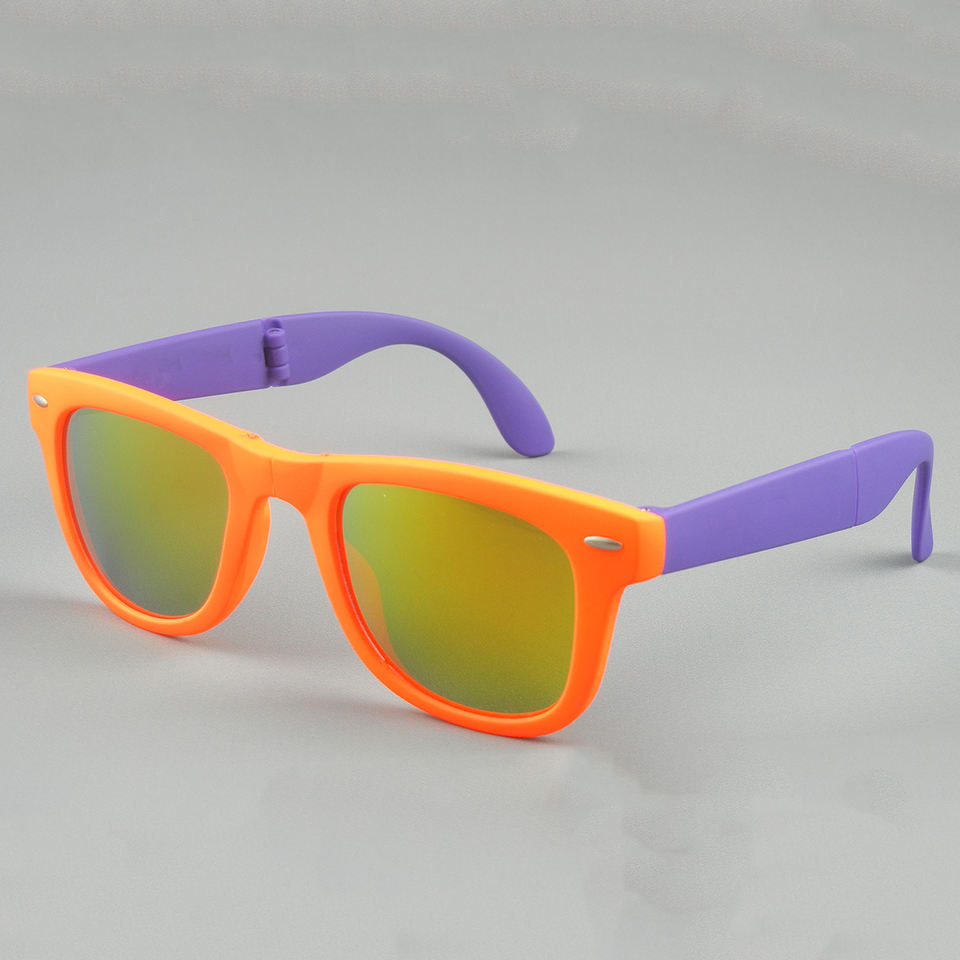 Unisex Compact Pocket Folding Sunglasses UV400 Protection Custom Logo Blue Purple Orange Plastic Shades Wholesale Yellow Red