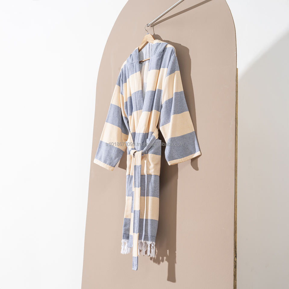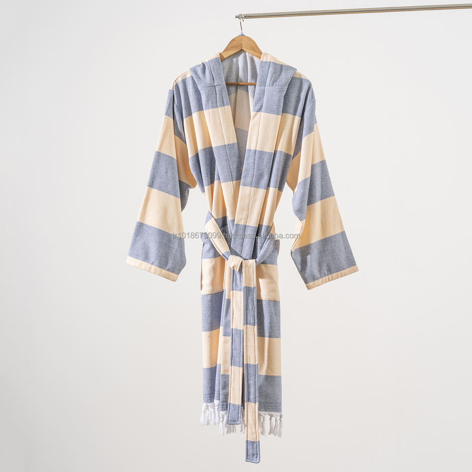 Unisex Cotton Bathrobe Lightweight Linen Woven Quick Dry Breathable Spring Summer Solid All Year XL Made Turkey Sleepwear Lounge