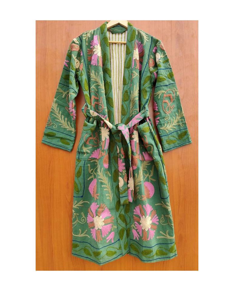 Unisex Cotton Suzani Hand Embroidered Jacket Coat Summer Season Winter Wear Women Spa Bath Bridesmaid Gift Wholesale Supply