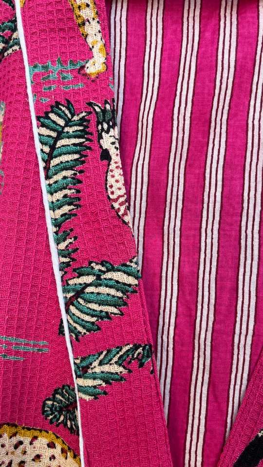 Unisex Cotton Waffle Weave Kimono Robe Floral Spa Bathrobe
