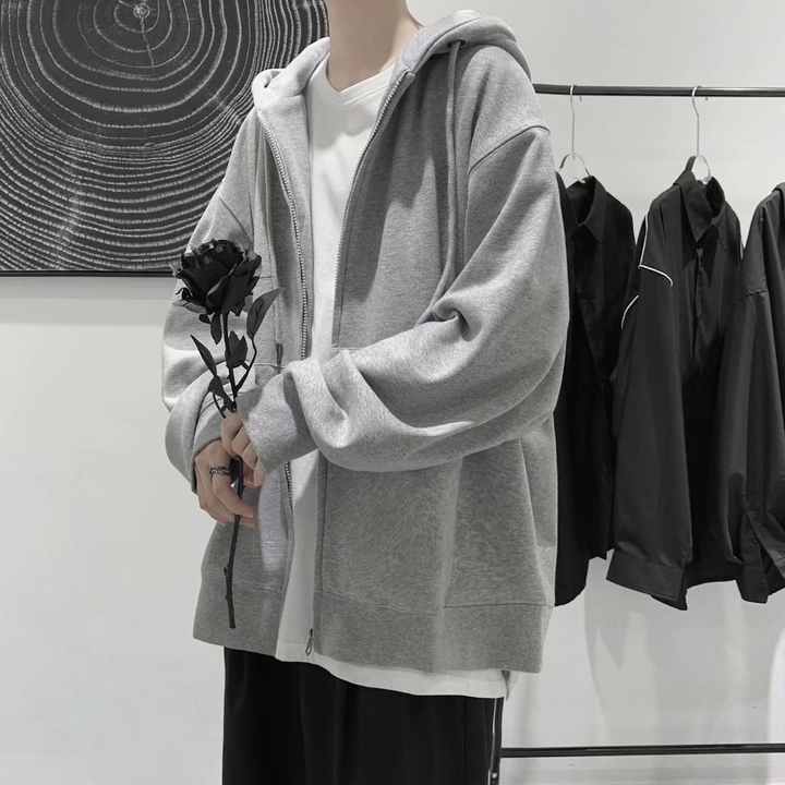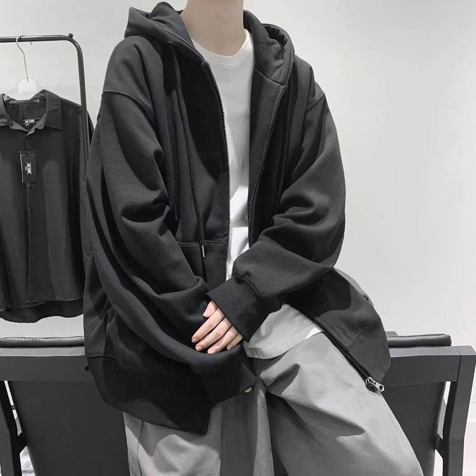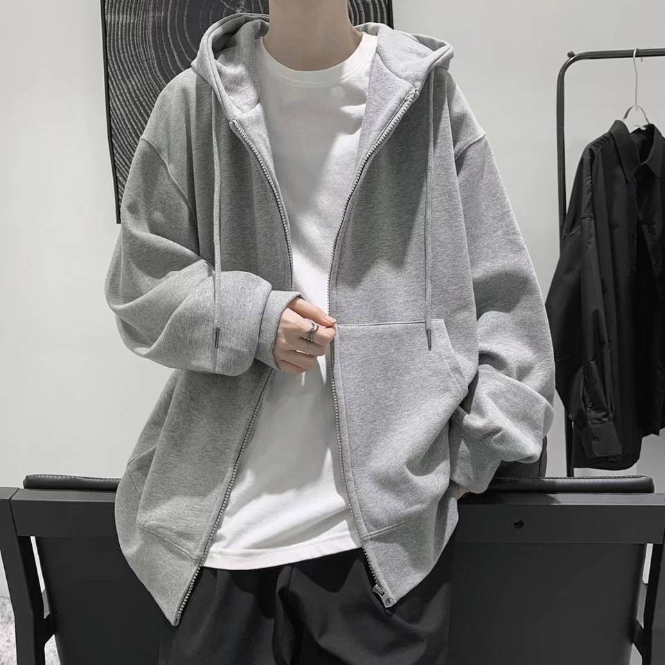 Unisex Cross-Border Solid Color Sweatshirt Jacket Men Hoodies with Zipper and Cardigan Loose Casual Style for Spring Autumn