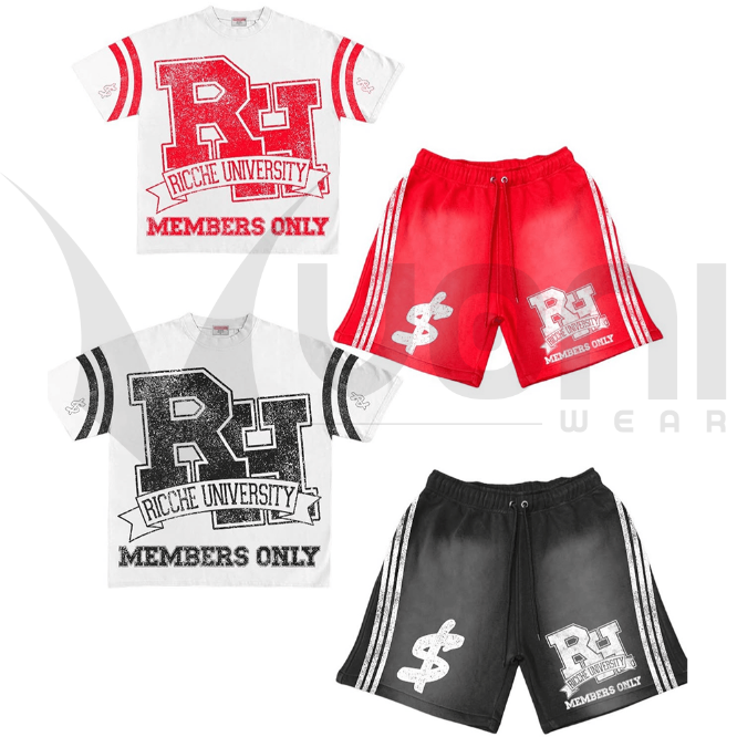 Unisex Custom 2T Vintage Acid Wash Hip Hop Design Breathable Oversized Men's T-Shirt and Shorts Set for Summer