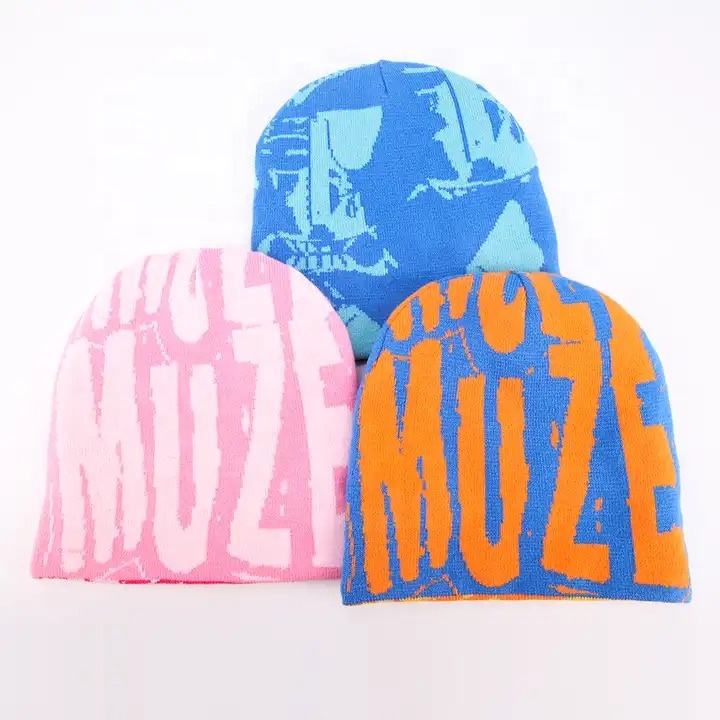 Unisex Custom Acrylic Jacquard Beanie Hats All-Over Print Reversible Winter Knitted Beanie Windproof for Skiing Waterproof