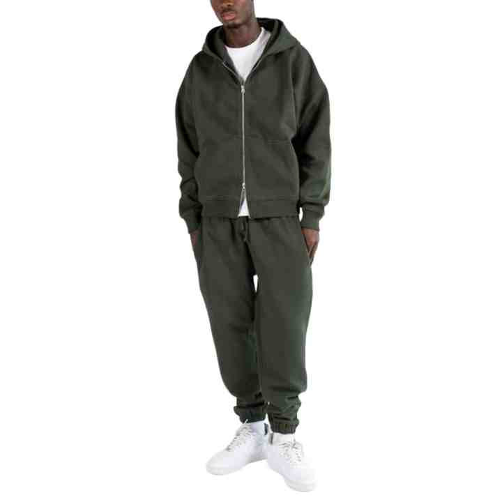 Unisex Custom Cotton Fleece Heavyweight Casual Tracksuit Full Zip Hoodie Plain Jogger 2-Piece Sweat Suits Set Jogging