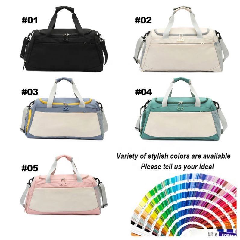 Unisex Custom Logo Portable Large Capacity Gym Bag Wholesale Nylon Sport Duffel with Geometric Pattern Travel Shoe Compartment