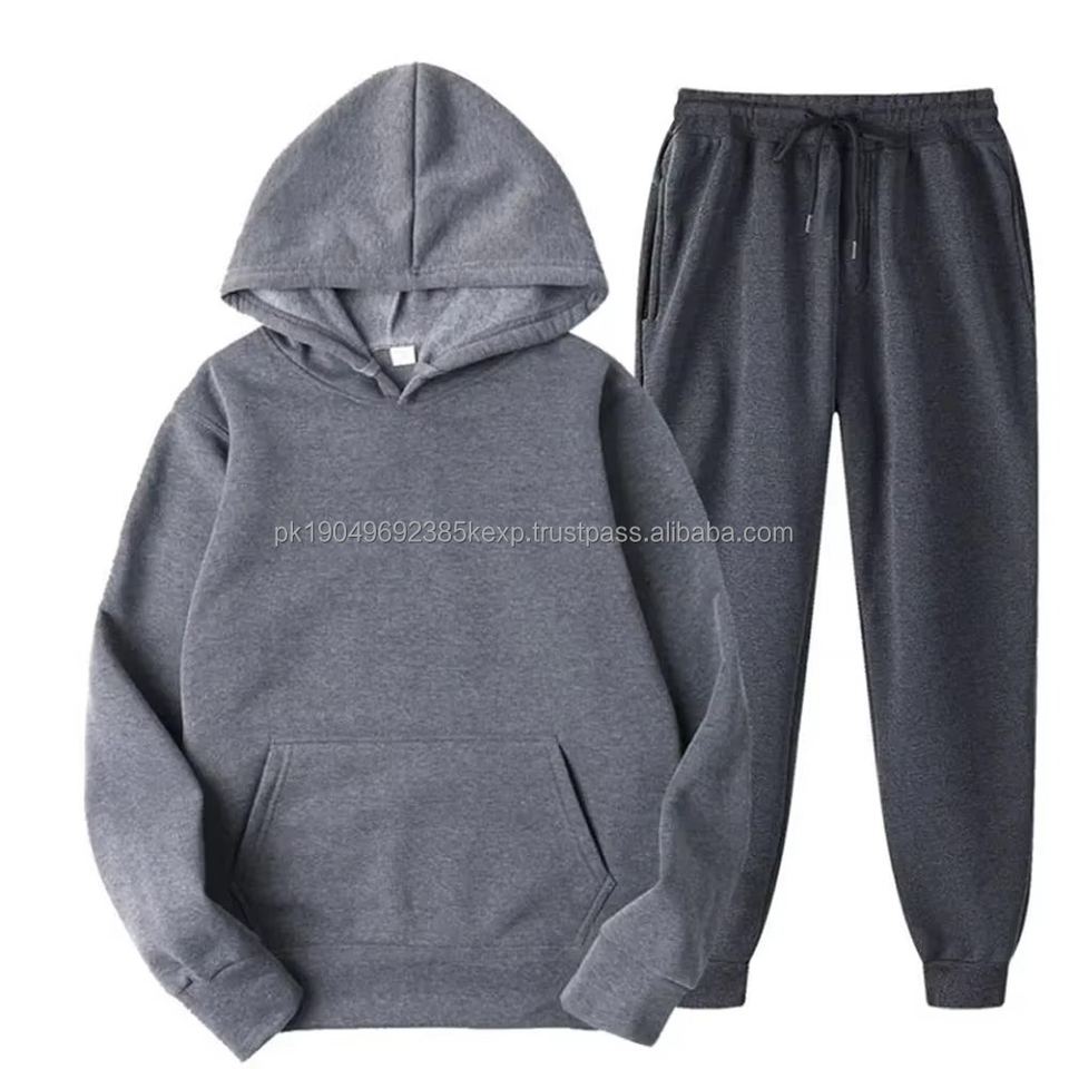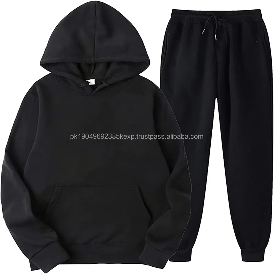Unisex Custom Logo Winter Fleece Tracksuit Two Piece Outfit Hoodie and Jogger Sweatpants Set With Printed Logo for Men Women
