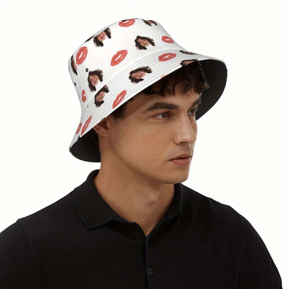 Unisex Custom Photo Bucket Hat Street Style Woven Cap with Hand Drawn Cartoon Pattern for Daily Use Personalized Image Name Logo