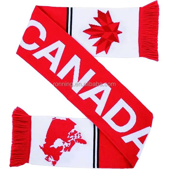 Unisex Custom Reversible Acrylic Jacquard Lightweight Knitted Sports Scarf Windproof Soccer Fan Muffler Square Winter Knit