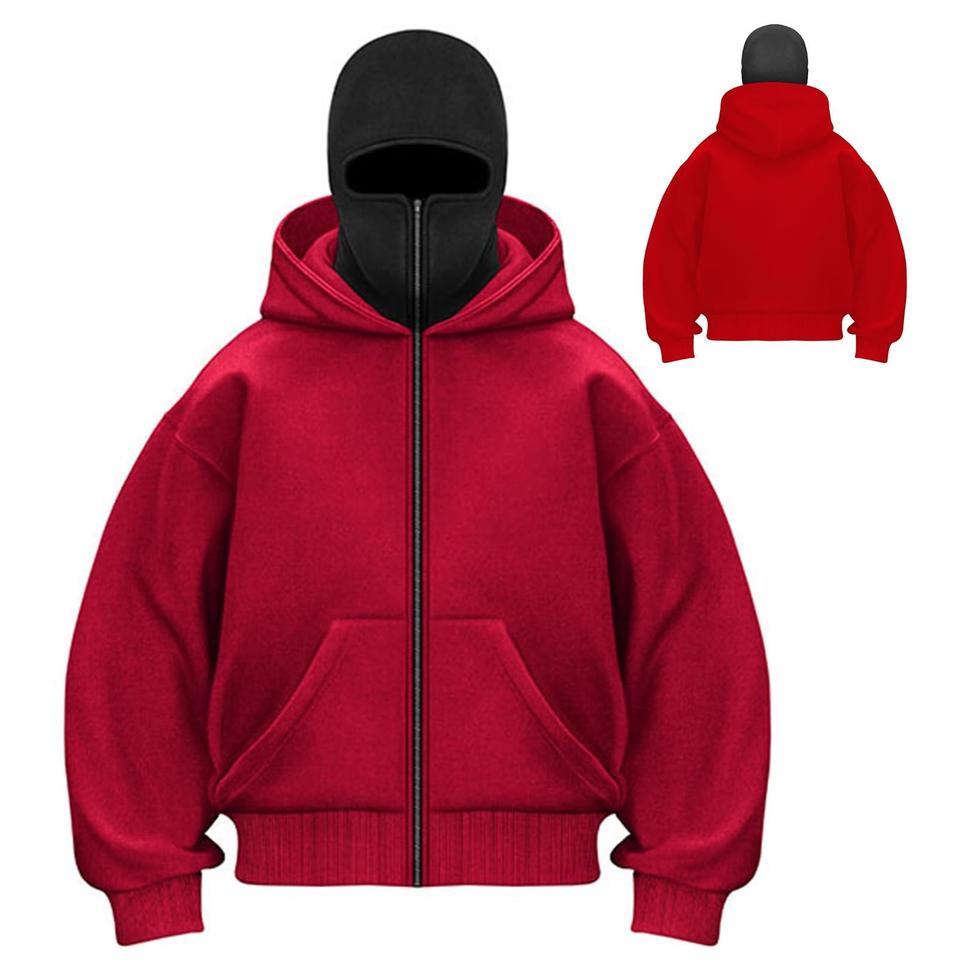 Unisex Customizable OEM Plus Size Men's Hoodies Embroidered Logo Sweatshirts Winter Balaclava Mask Hoodie Set Plain Blank Design