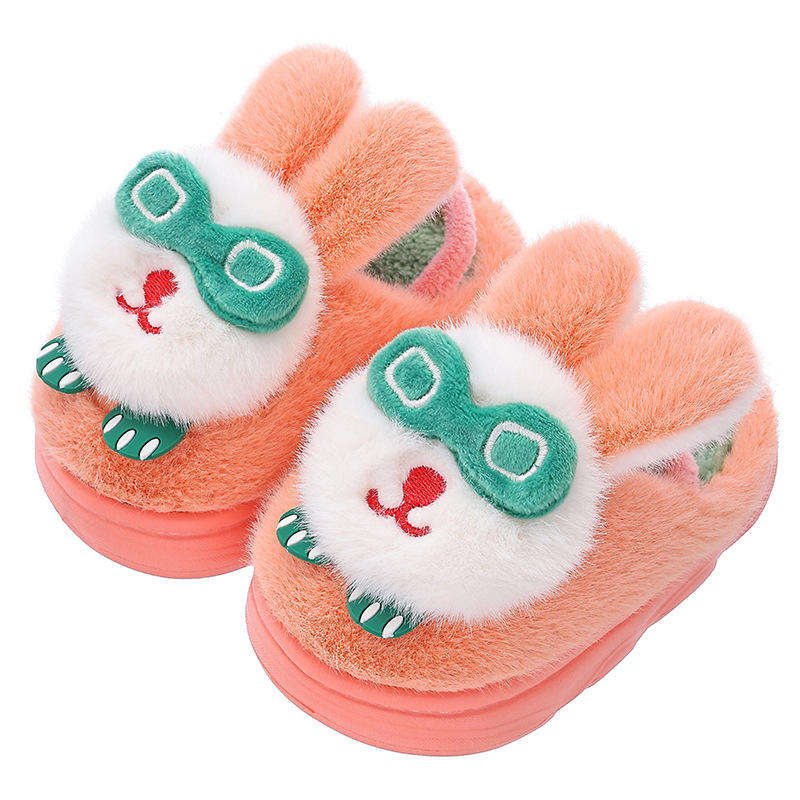 Unisex Cute Cartoon Cotton Rabbit Indoor Home Slippers New Soft Non-slip Warm Winter Design for Kids Boys and Girls