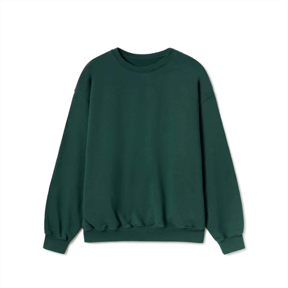 Unisex Dark Green 100% Cotton Fleece Sweatshirt Custom Oversized Pullover Crewneck Patchwork Streetwear Casual Eco-Friendly Warm