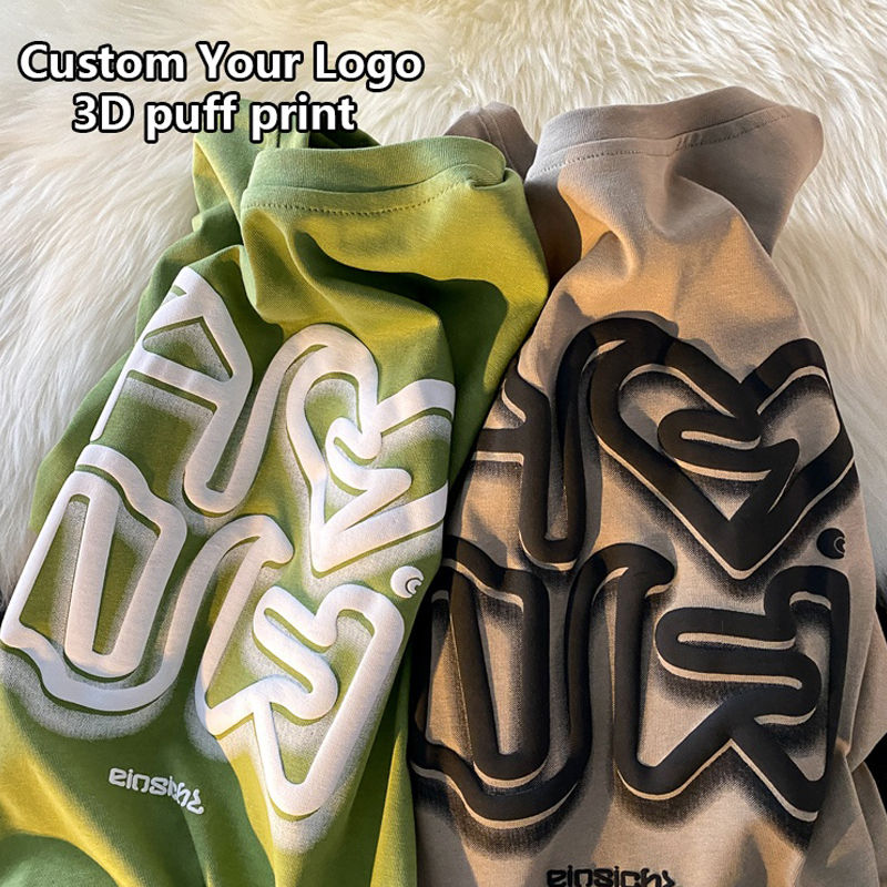 Unisex Distressed Puff Printed Shirt Men's 100% Cotton Streetwear Custom Logo Loose Fit Heavyweight T-Shirt 200 Grams Fabric