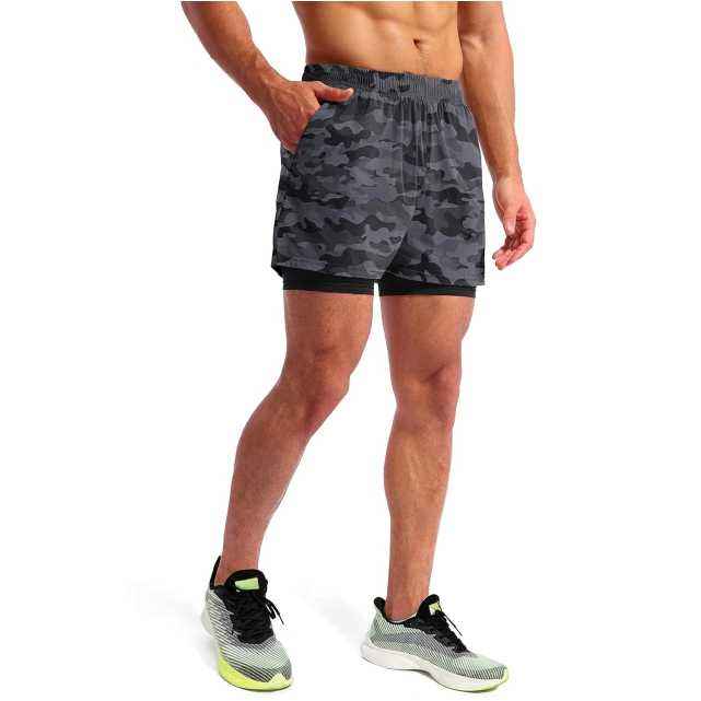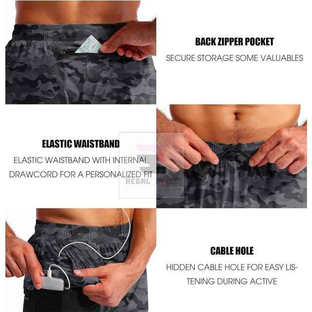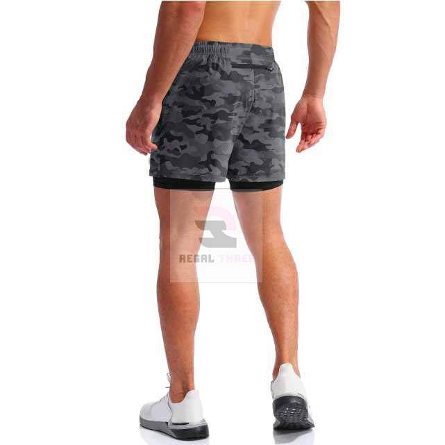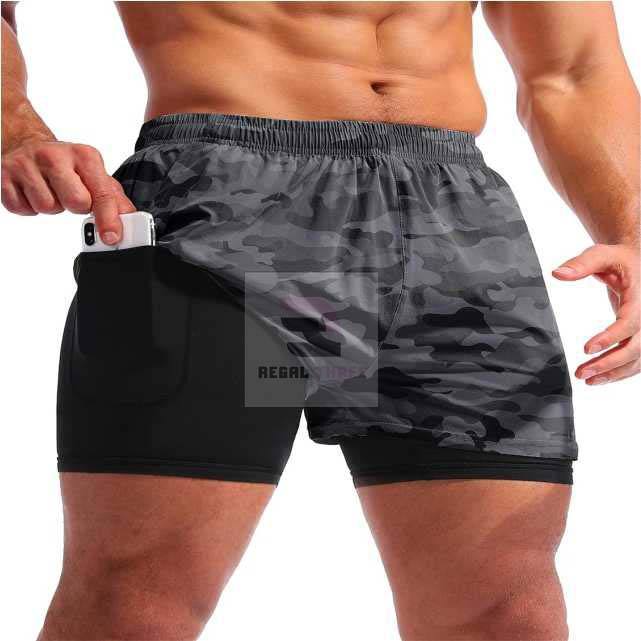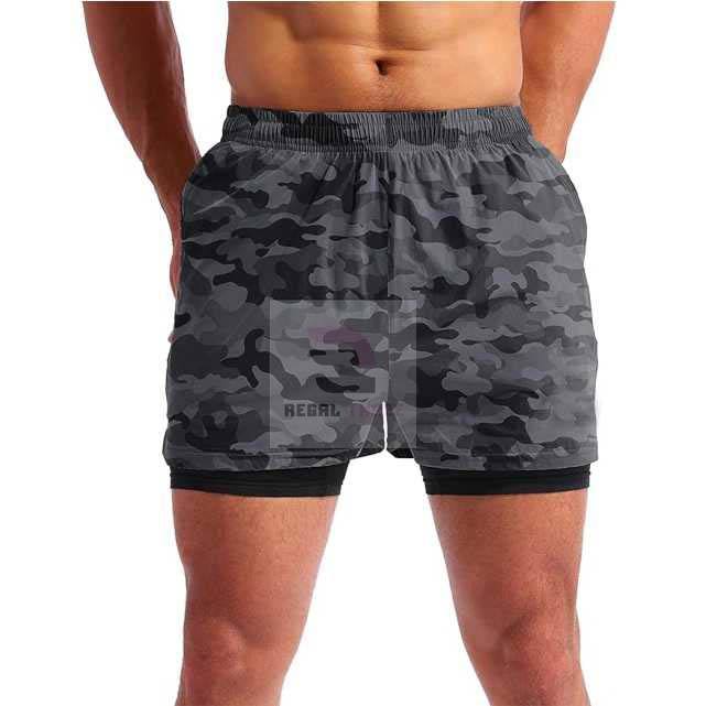 Unisex Double Compression Gym Shorts Breathable Casual Fitness Design with Lace Decoration and Elastic Waist Closure