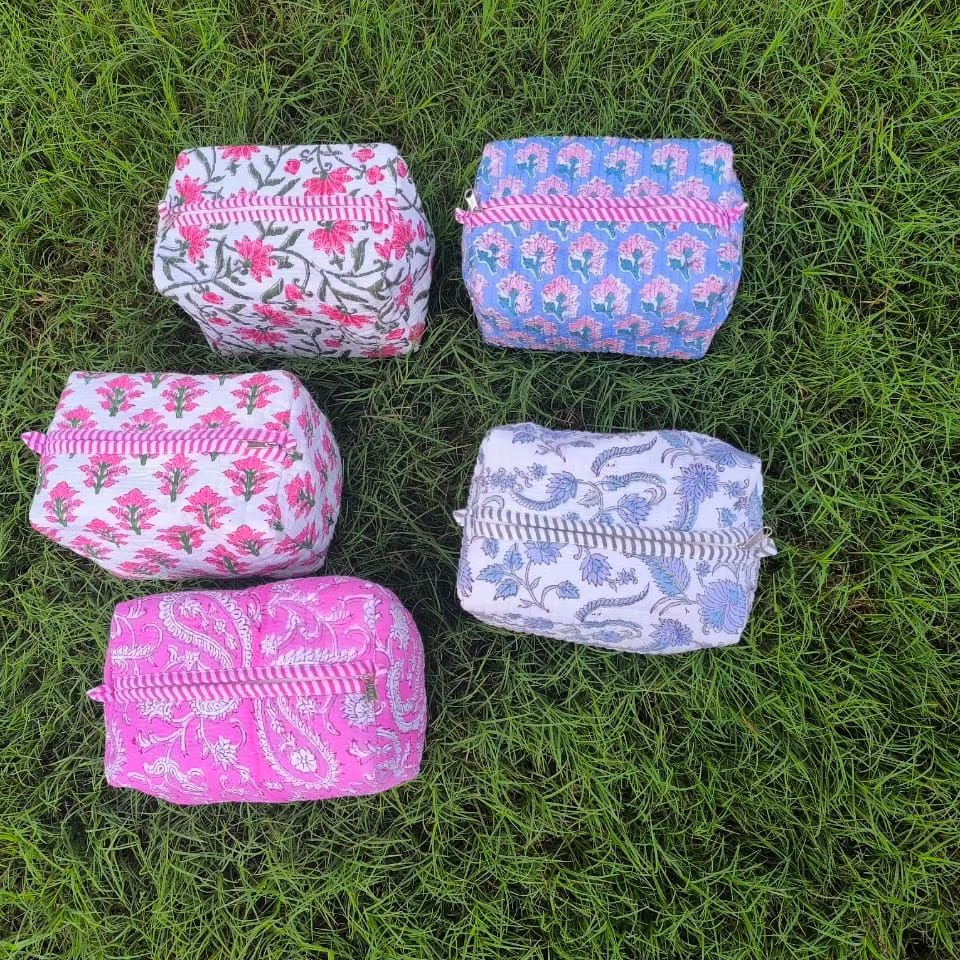 Unisex Eco-Friendly Cotton Reusable Zipper Cosmetic Makeup Bag Set with Bohemian Animal Prints-Travel Pouch Organizer Small Size