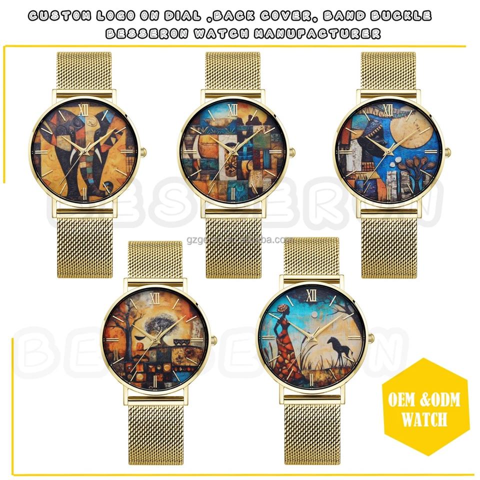 Unisex Fashion Business Alloy Wristwatch Minimalism Quartz Pointer Dial Customization Logo Color Printing 36mm Africa Element