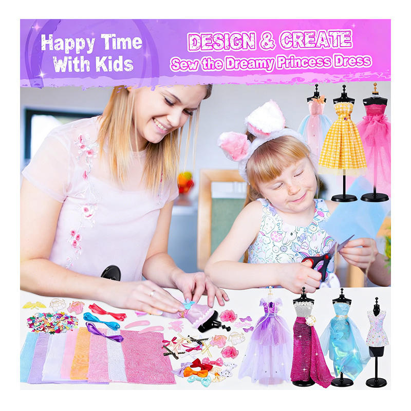 Unisex Fashion Designer Kit Kids Creative Sewing Clothing Design Plastic Educational Model Toy Mannequin Fabric Templates
