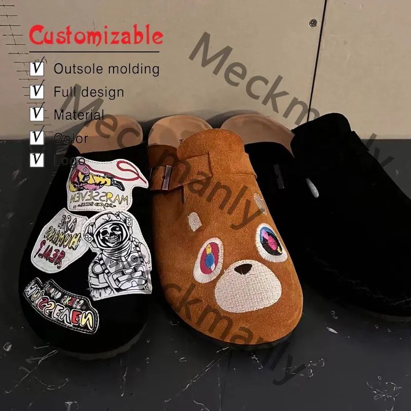 Unisex Fashion Genuine Leather Cowhide Cork Inner Clogs for mens shoes sandals