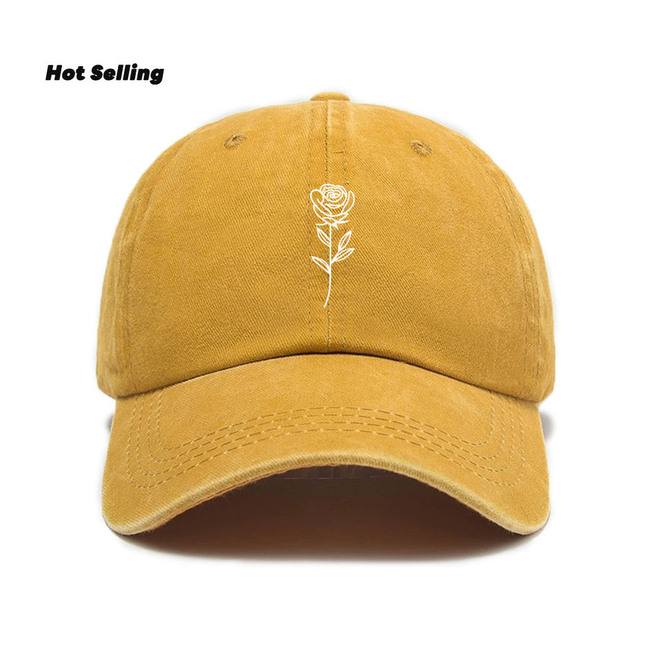 Unisex Fashionable Baseball Cap Spring Summer Simple Joker Rose Printed Washed Curved Baseball Caps