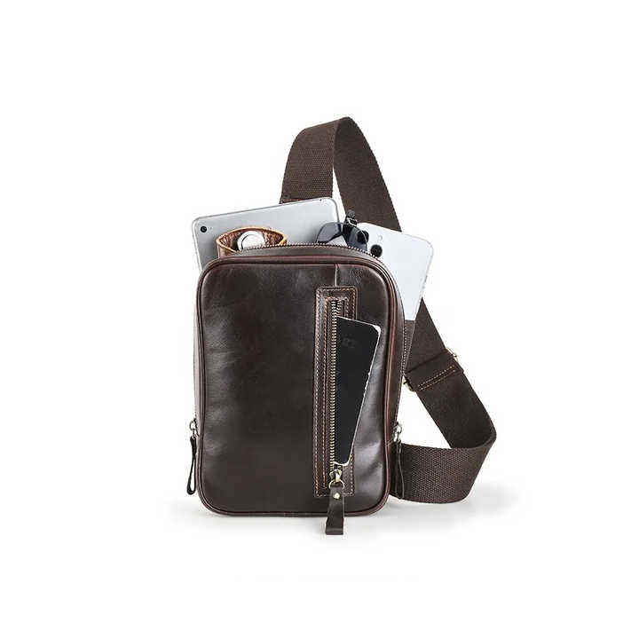 Unisex Fashionable PU Leather Travel Chest Shoulder Bag Portable Messenger Sling Crossbody USB Charging for Daily Use