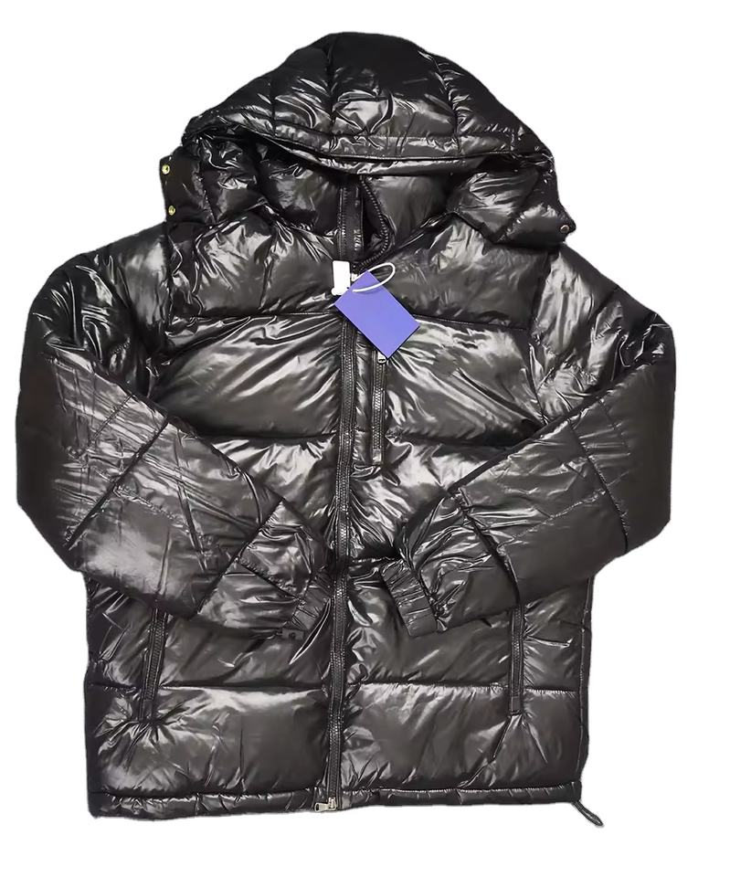 Unisex Formal Spring Coated Bomber Jacket Hooded Waterproof Windproof Design Cotton Blend Shiny Bubble Padded Softshell Front