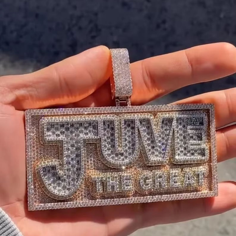 Unisex Fully Iced Out Personalized Name Pendant Two Tone Vintage Hip Hop Style Moissanite Diamond Fashion Jewelry