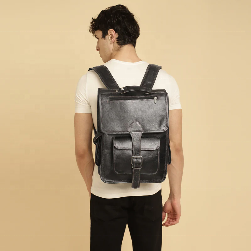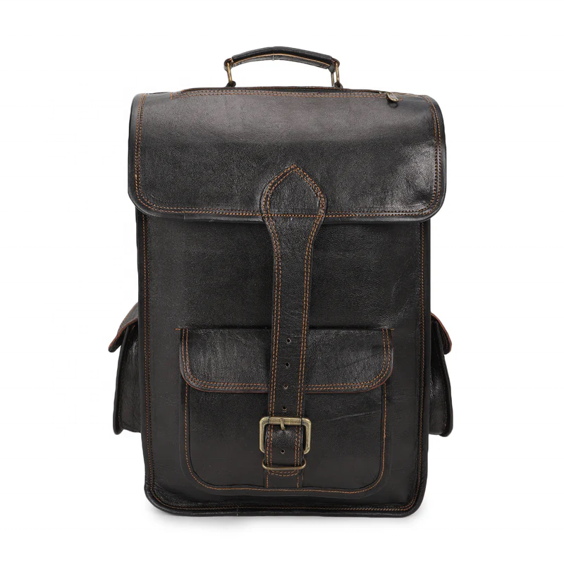 Stylish Unisex Goat Leather Backpack Zipper Handmade Business Travel Bag Anti-Theft Feature Canvas Lining Gift for Him Her