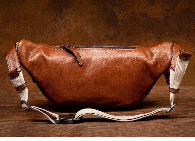 Unisex Genuine Leather Eco-Friendly Large Waist Fanny Bags Sling Cross Body Hip Belt Bum Bag