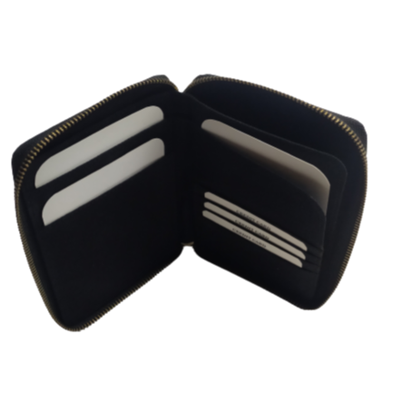 Unisex Genuine Leather Wallet Vintage Black Waxed Canvas Short Button Closure Embroidery Pearl Tassel Anti-Theft Candy Liner