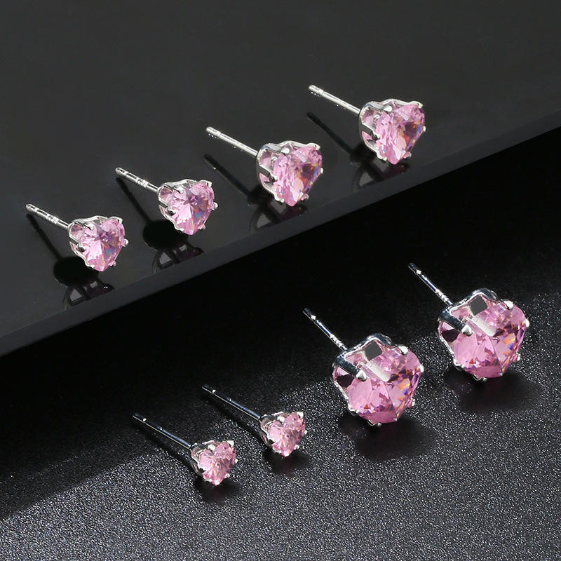 Unisex Gift Ear Piercing Four-Claw Heart Zircon Small-Circle Classic Style New Luxury Commute Bone Stud Wholesale