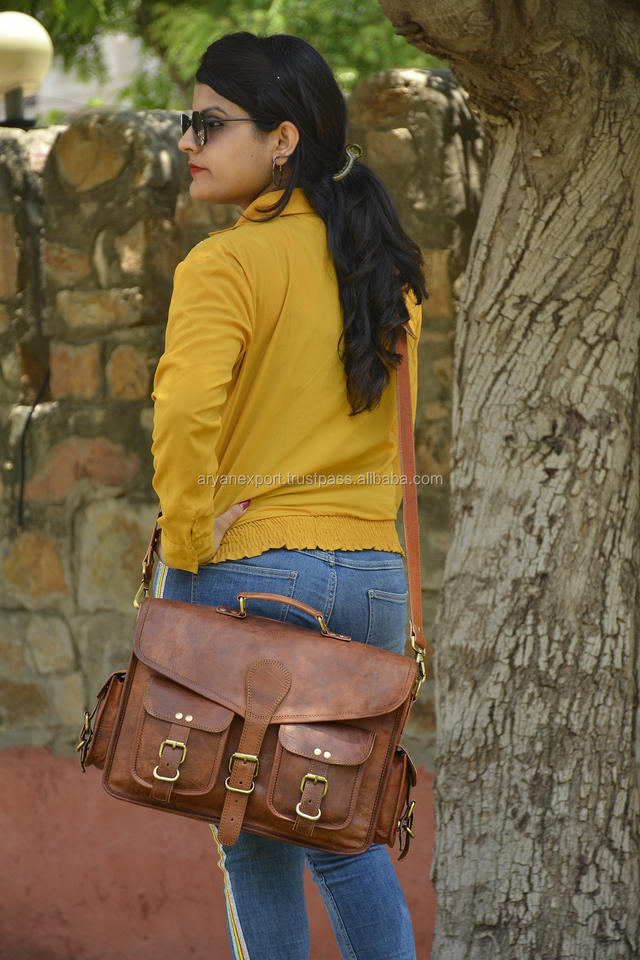 Unisex Goat Leather Vintage Messenger Bag Laptop Leather Bag Vintage Stylish Leather Bags