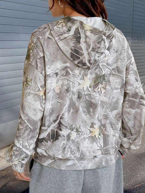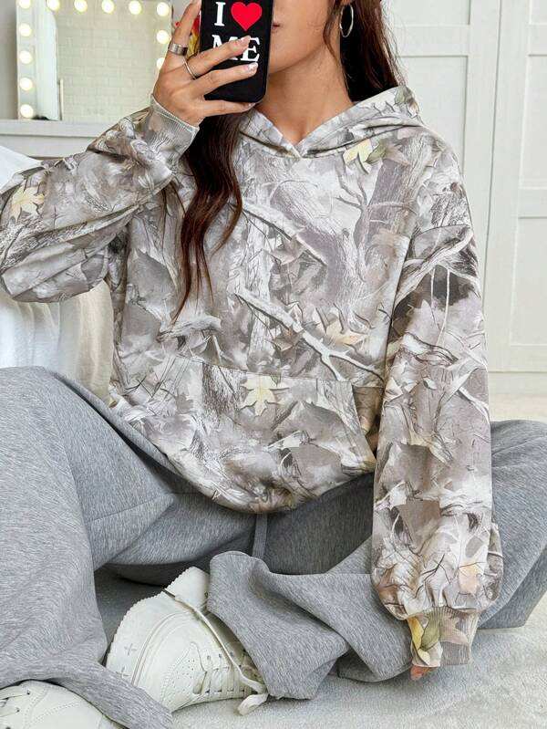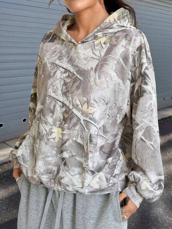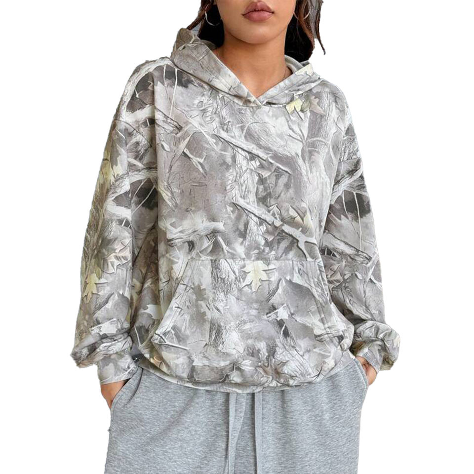 Unisex Grey Camouflage Print Pullover Hoodies Loose Fit Long Sleeve Streetwear Casual Winter Wear Custom Logo OEM Manufacturer