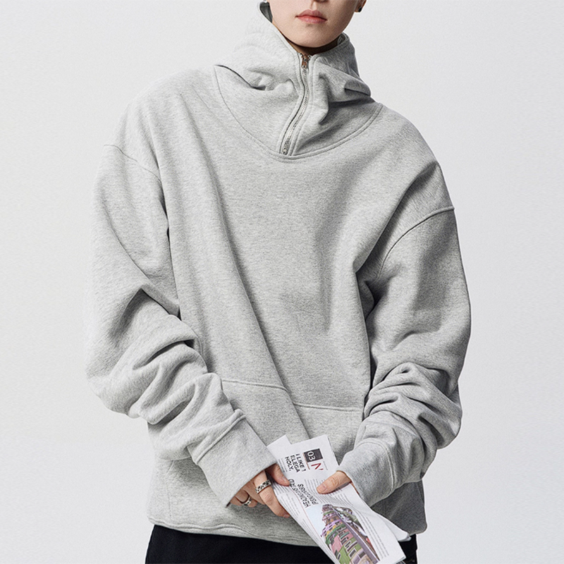 Product name:Grey Oversized Half Zip Hoodie Loose Fit Streetwear Hooded