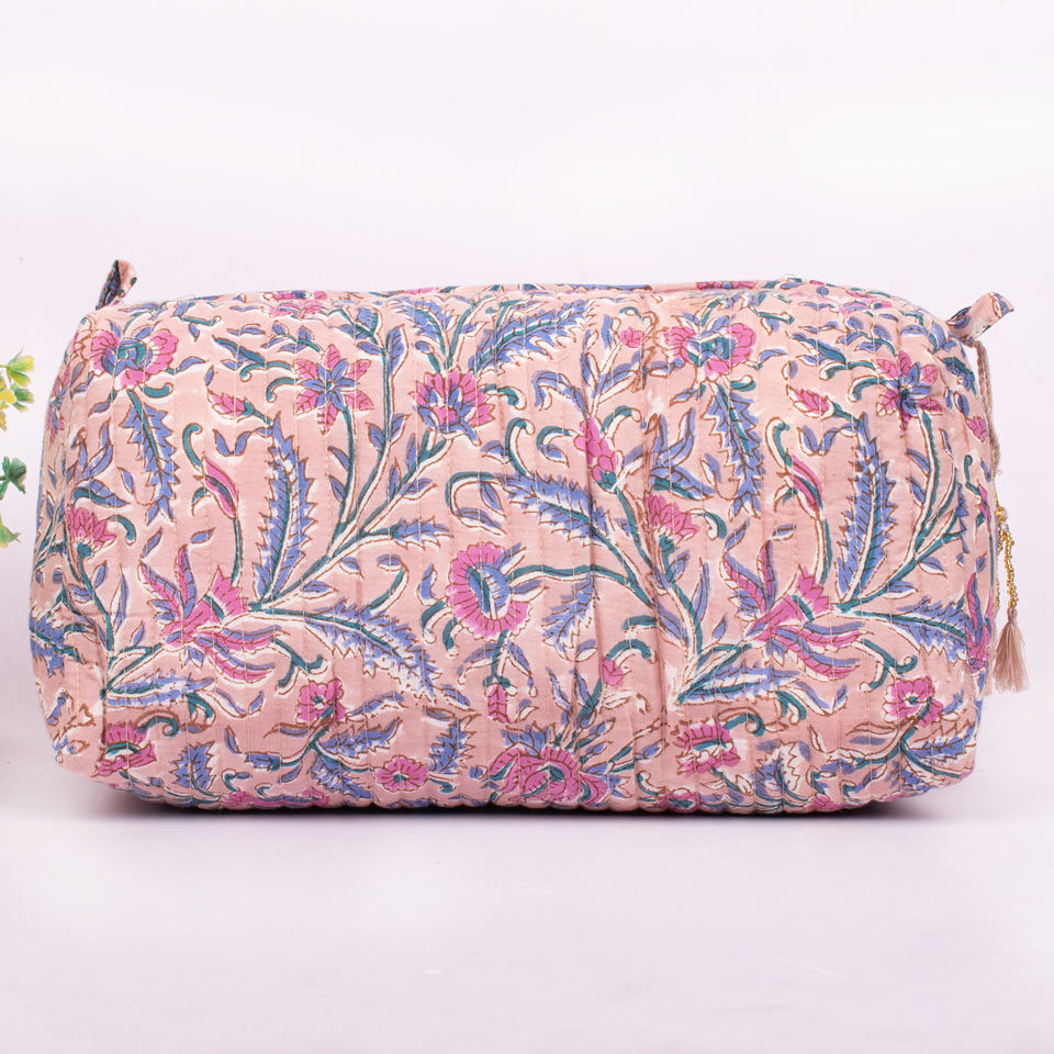 Unisex Hand Block Floral Print Eco-friendly Cotton Cosmetic Bag Small Bohemian Style Pouch Travel Packaging Zipper Closure Large