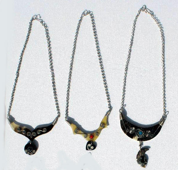 Unisex Hand Carved Bullhorn Tribal Jewelry Ethnic Horn Pendant Necklace Pearls Diamonds Inspired Religious Art Peruvian Culture