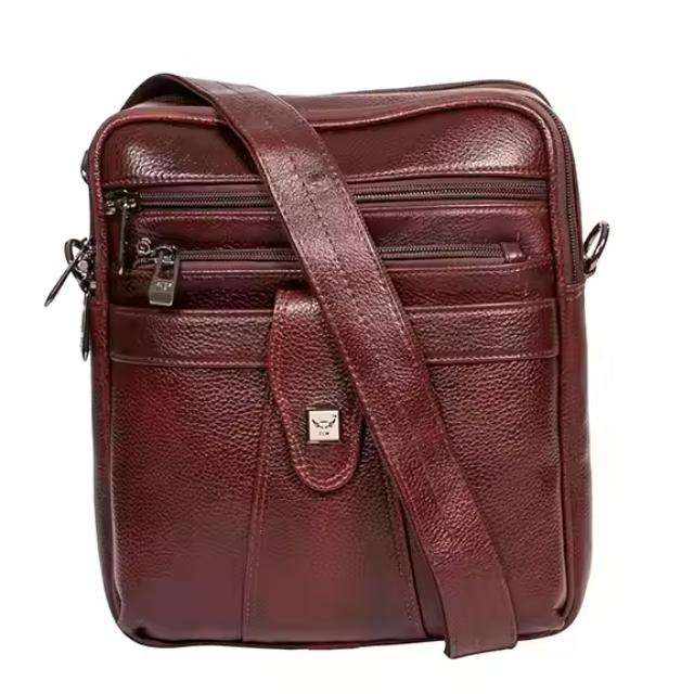 Unisex Handmade 10x9 Inch Genuine Leather Side Bags Casual Vintage Style with Fashionable Zipper Closure and Cotton Lining