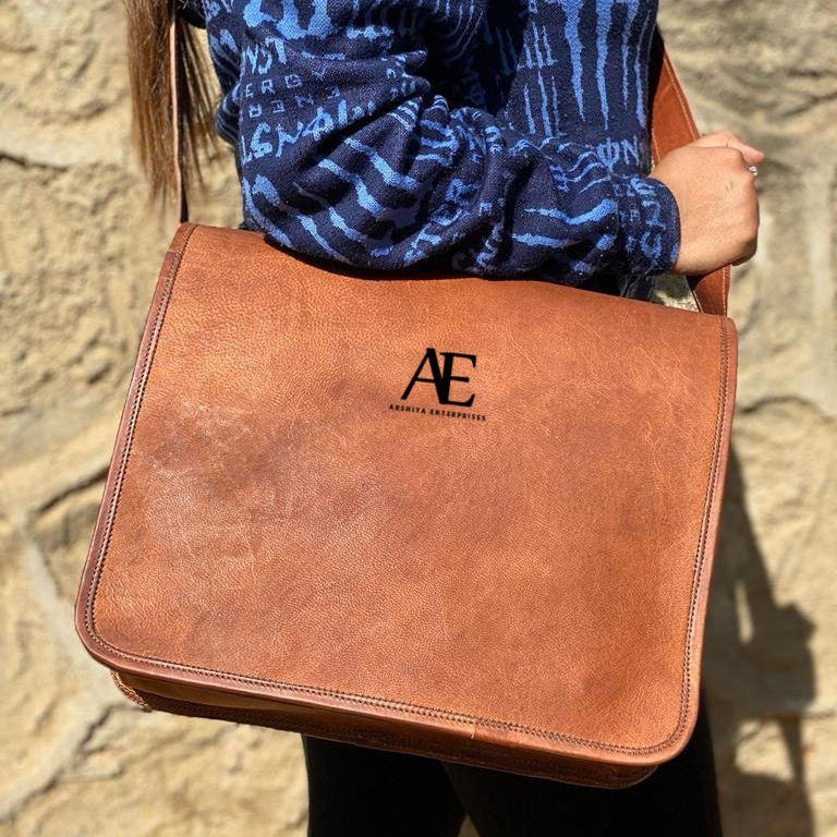 Unisex Handmade Goat Leather Sling Bag Casual Small Daily Use Shoulder Handbag