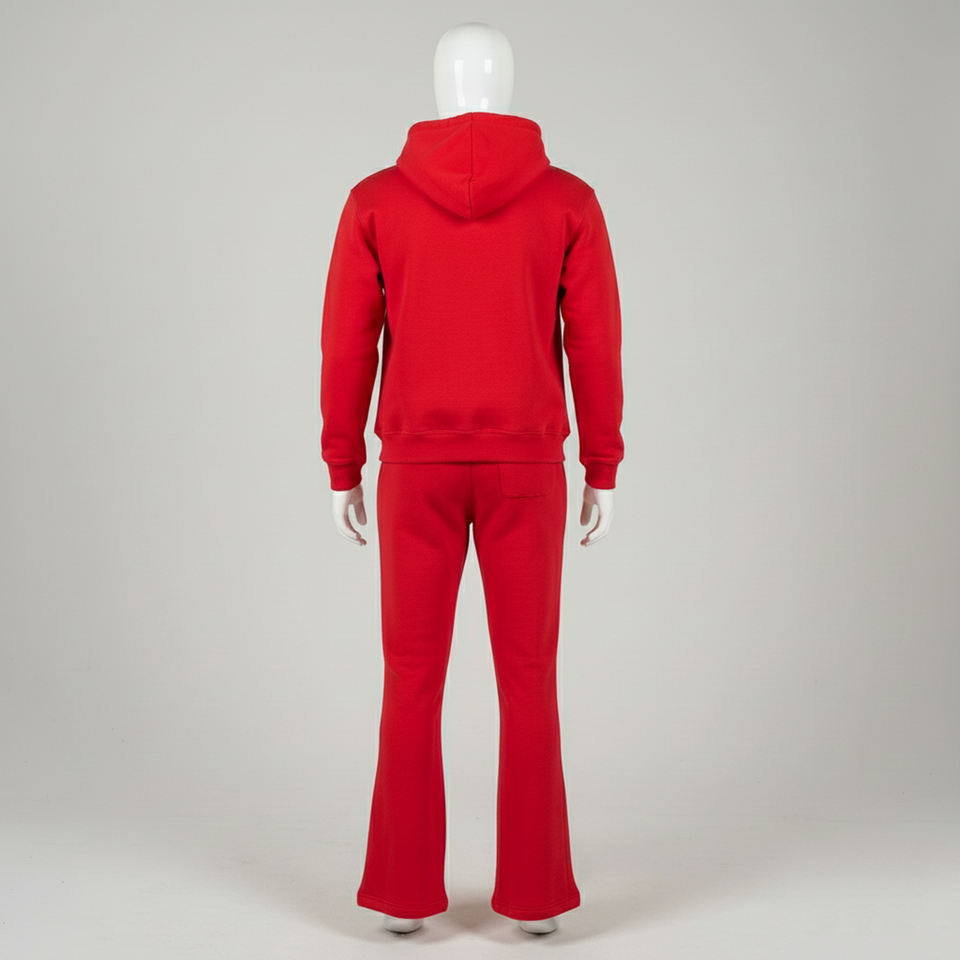 Unisex Heavyweight Solid Pink Graphic Drawstring Hoodie and Flare Pants Set Two-Piece Streetwear Tracksuit Outfit