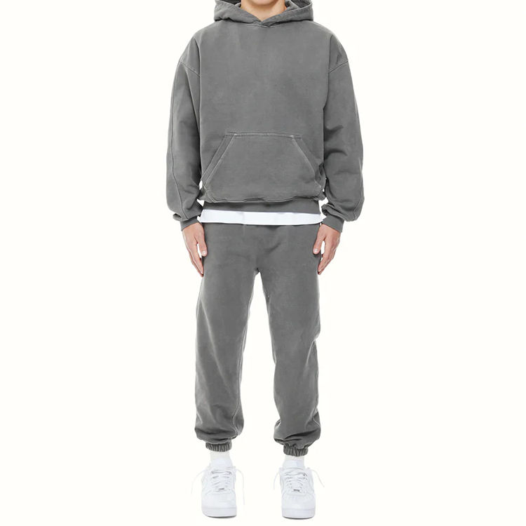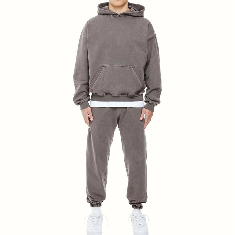 Unisex High Quality 100% Cotton Fleece Tracksuit Vintage Acid Wash Oversized Sweatsuits Set Plain Hooded Streetwear for Men