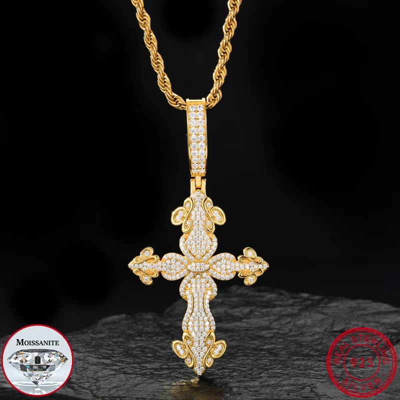 Unisex High Quality D Color VVS1 Moissanite Cross Hip Hop Pendant for Women, Men's Real 925 Silver Iced Out Hip Hop Jewelry
