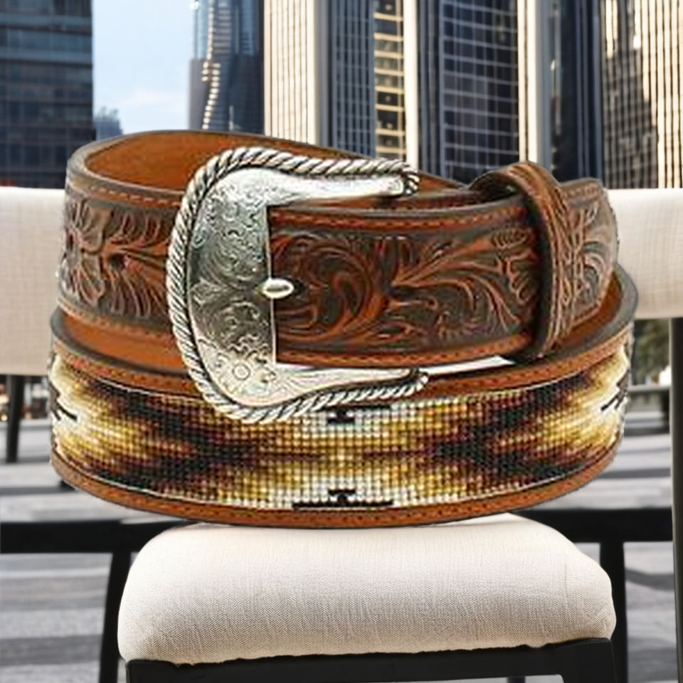 Unisex High Quality Genuine Cow Hide Leather Belts Hand-Tooled Western Beaded Design Custom Length Logo Direct Factory Prices