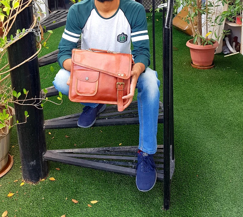 Leather messenger bag
