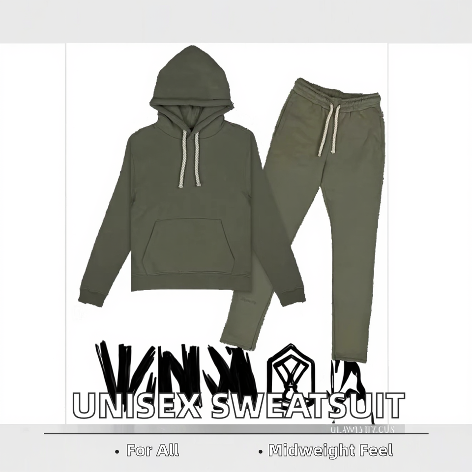 Unisex High Street Casual Sportswear Track Suit French Terry Fleece Sweatsuit with Breathable Drawstring Pants Printed Washed