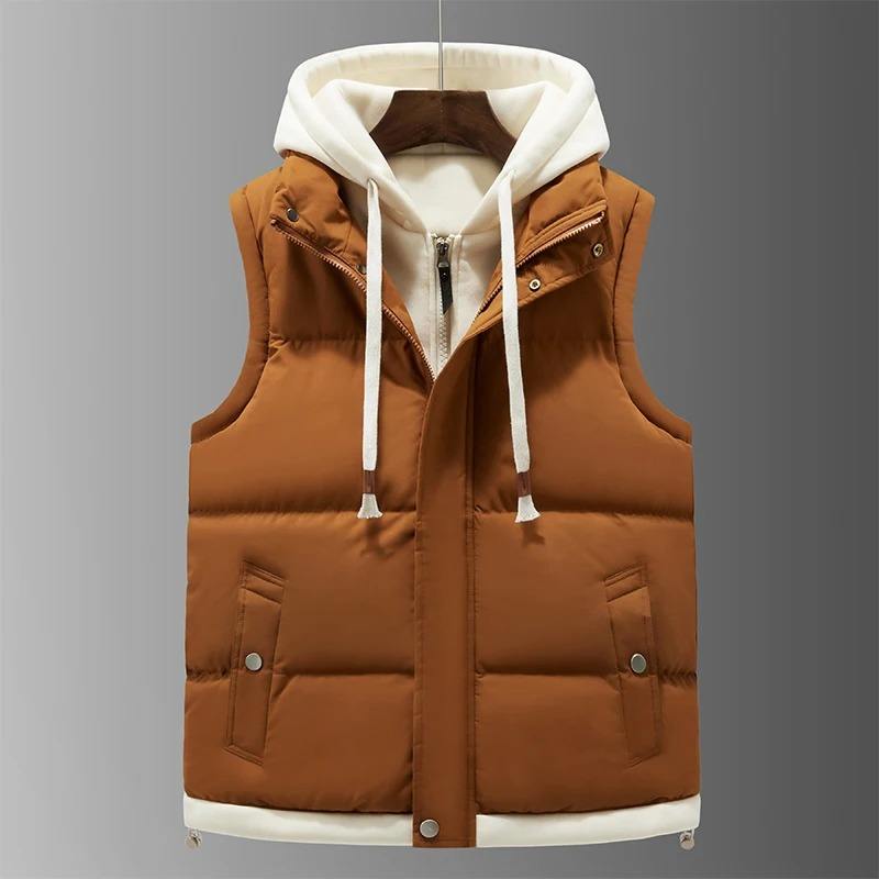 Unisex Hooded Vests Jacket Casual Coats with Zipper Closure Autumn/Winter Thermal Soft Cotton for Men Sleeveless Vest Jacket