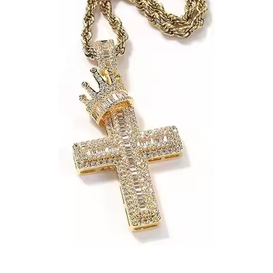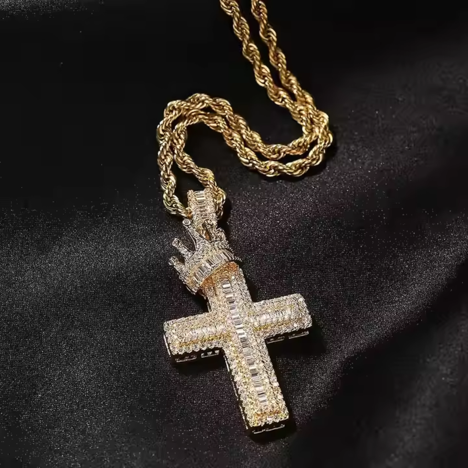 Unisex Iced Fine Pendant 925 Silver Custom Cross Baguette Design Diamond Moissanite Hip Hop Street Fashion Personalized Artist